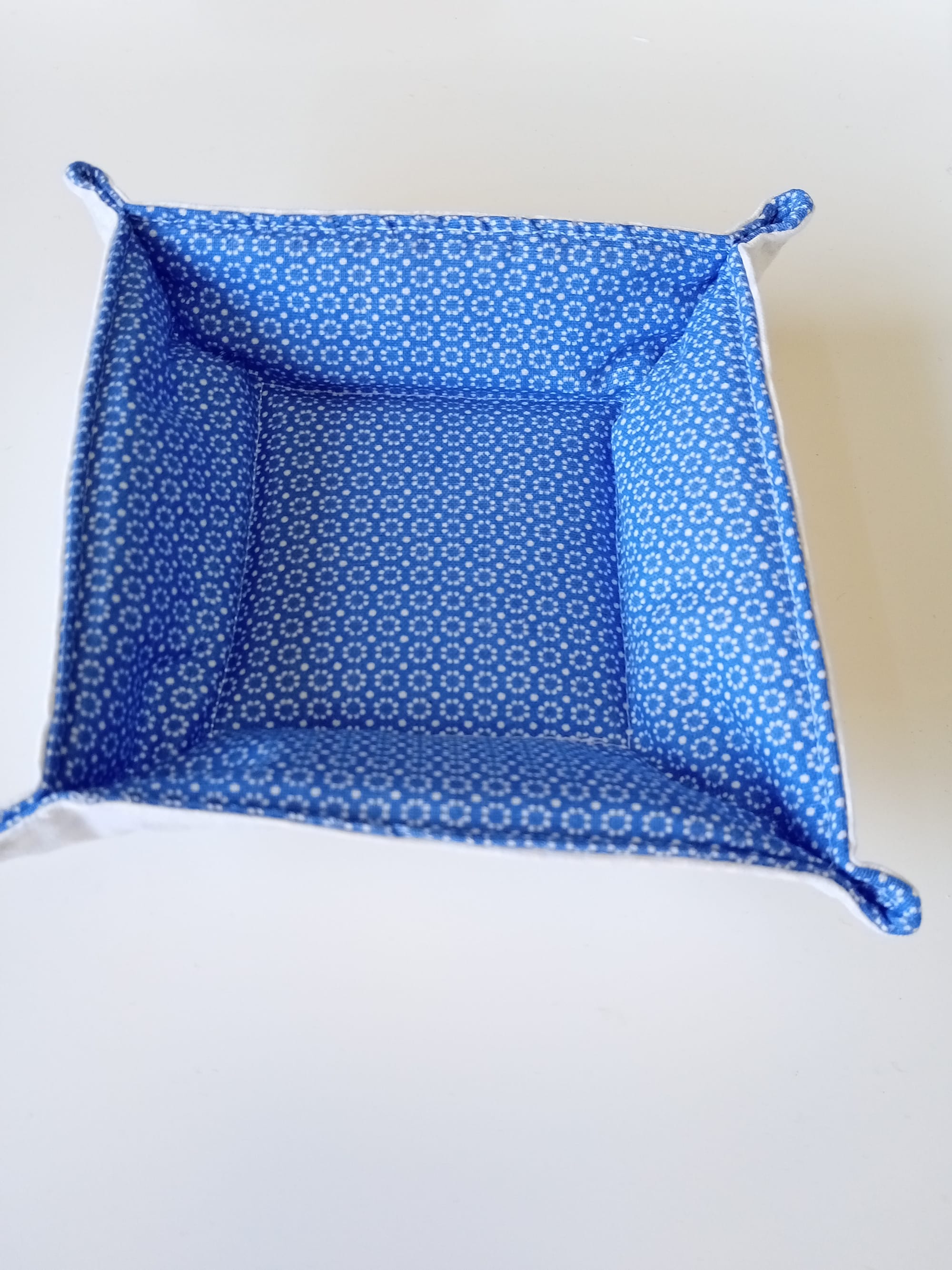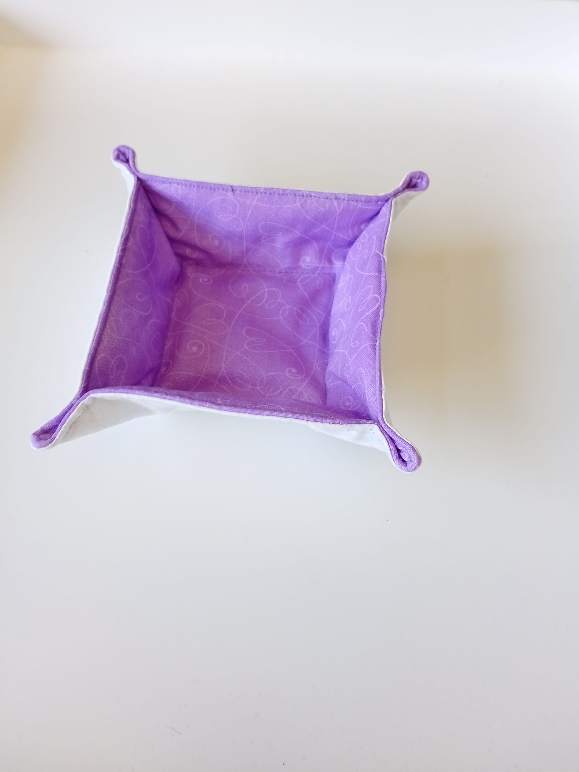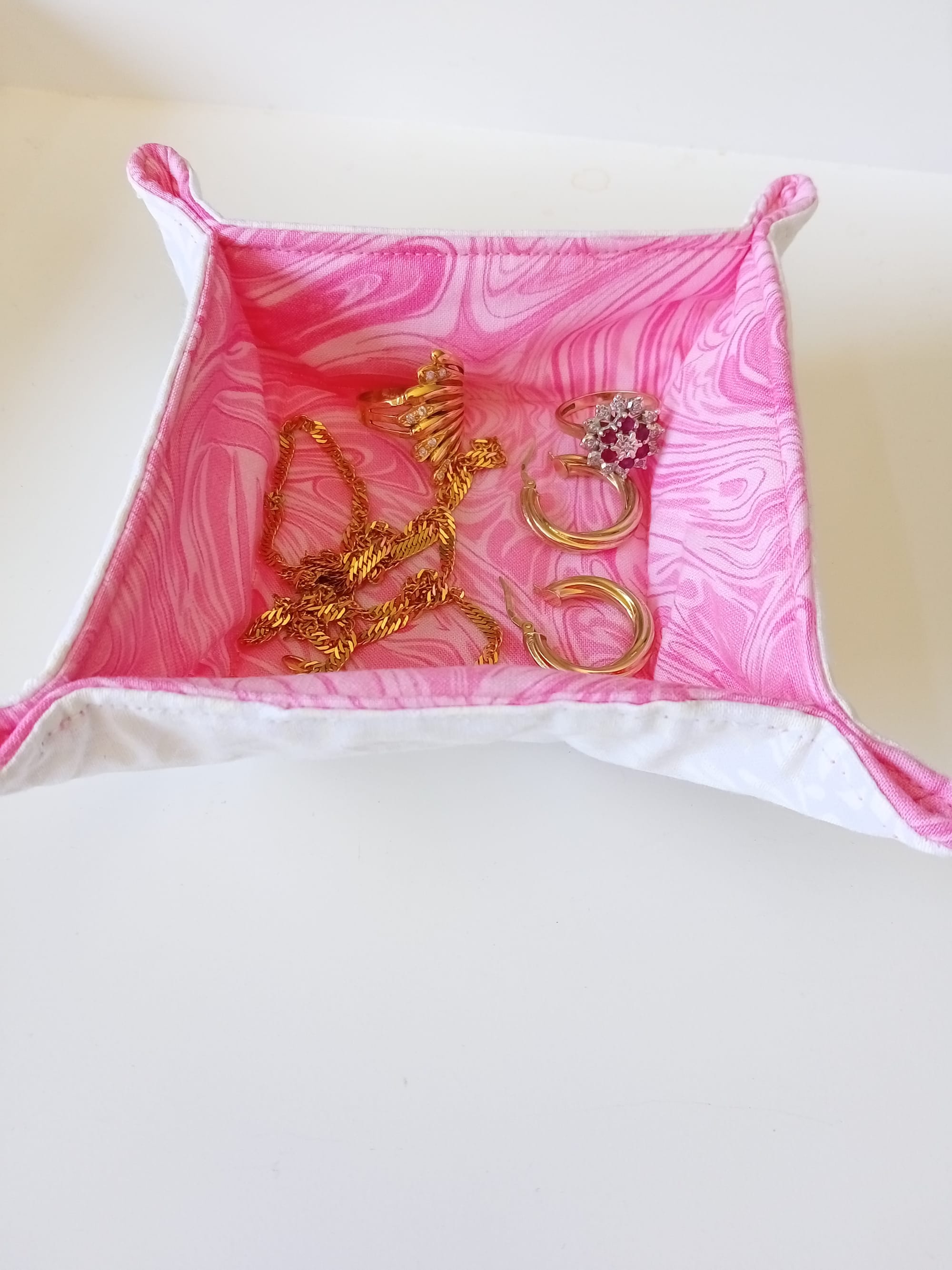 These mini trays are made with soft batting sandwiched between two co-ordinating fabrics.