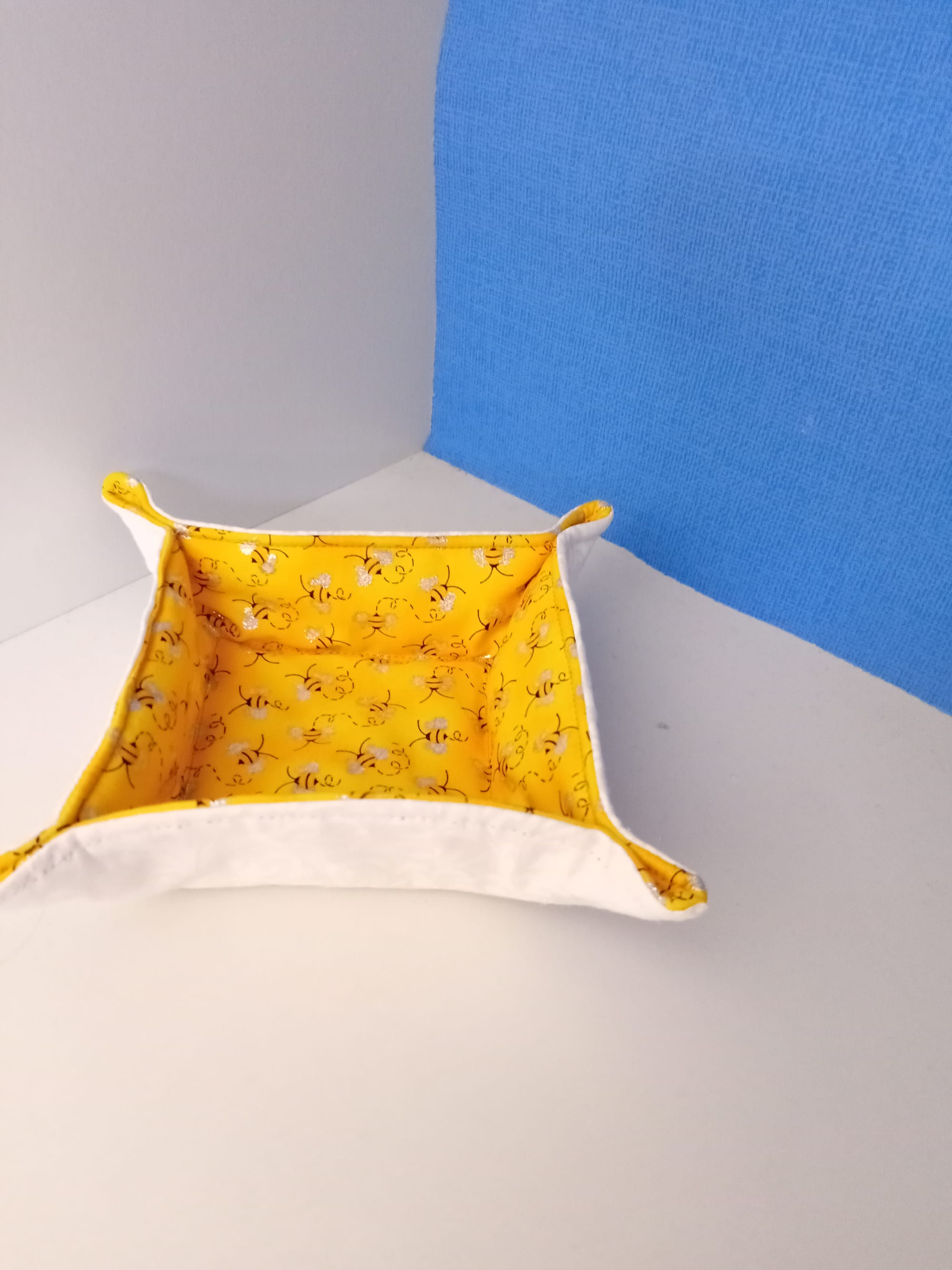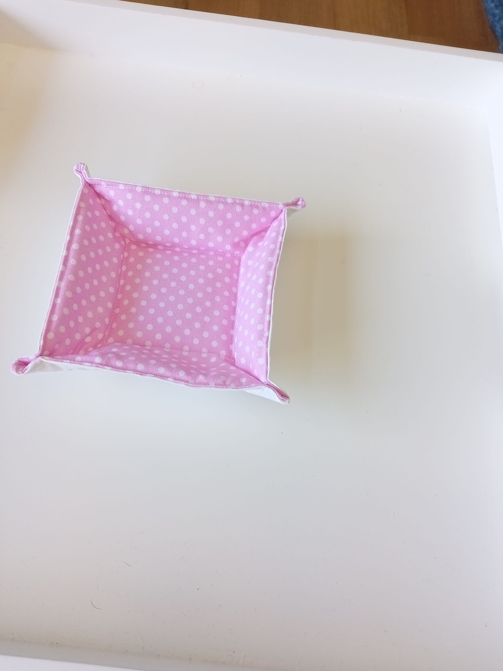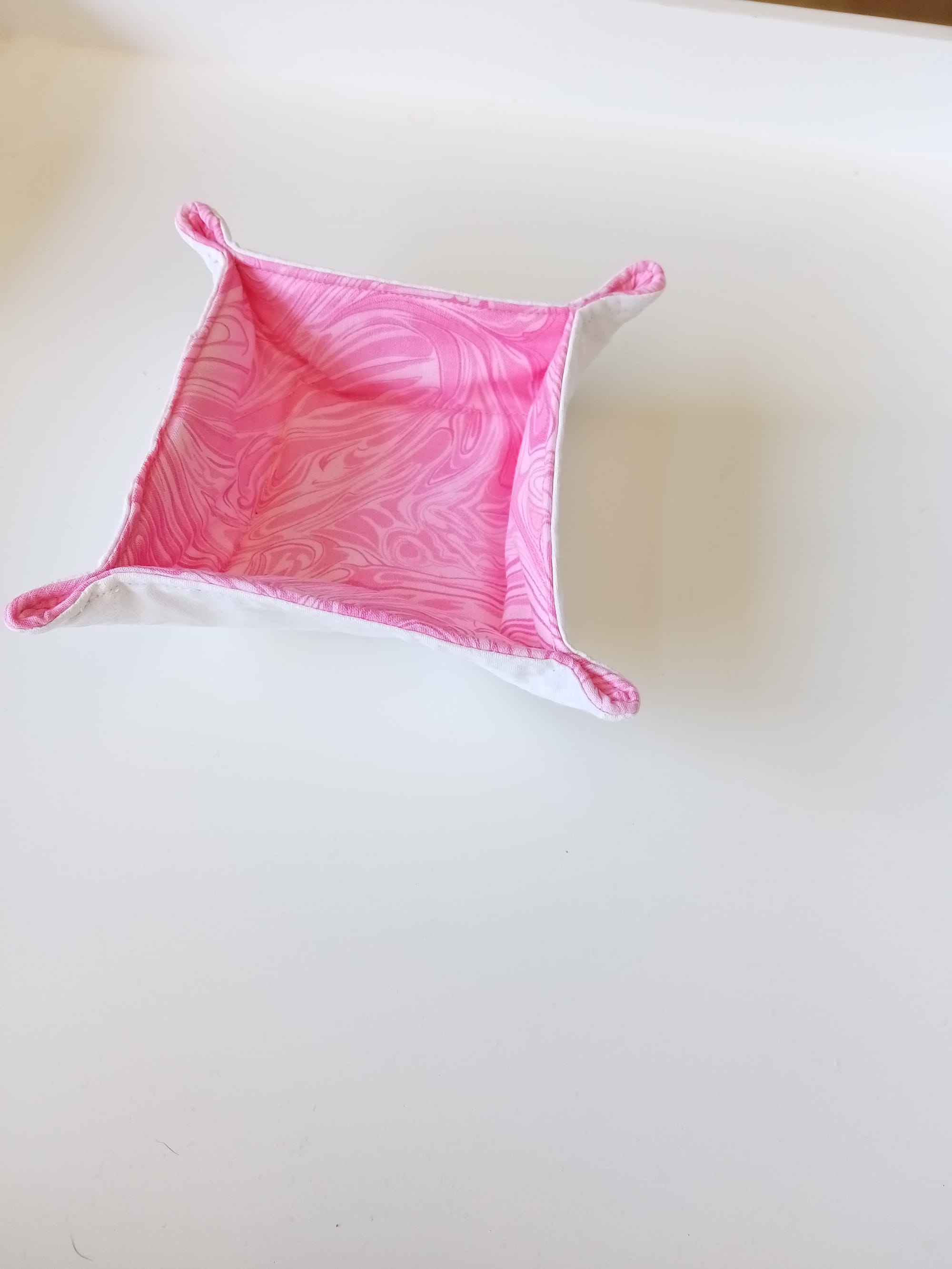 These mini trays are made with soft batting sandwiched between two co-ordinating fabrics.